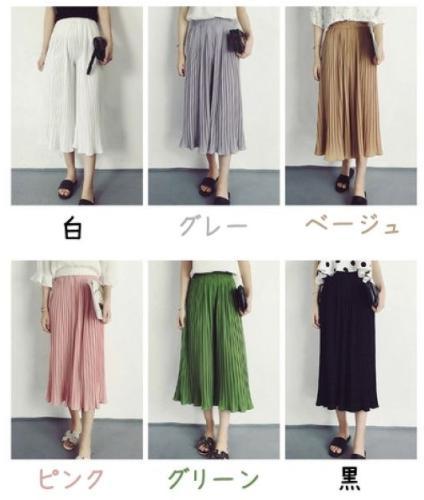 ワイドパンツ型のプリーツスカートが、大人っぽさと綺麗な印象を与えるハイウエストのスカンツ。