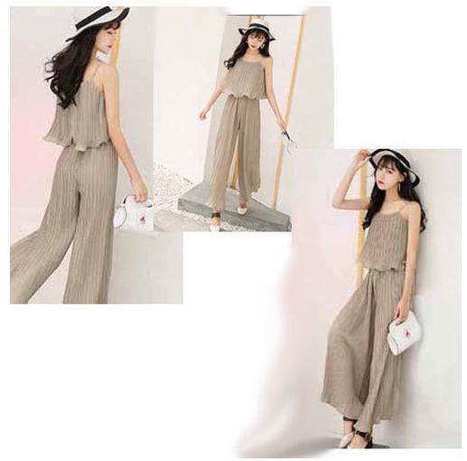 *ストラップシフォンプリーツワンピース、軽やかで薄いシンセクションシックなワイドレッグパンツスカート