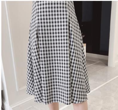 上品なひざ丈、カーキ などの暗めな色ではなくベーシック な 黒白 ギンガムチェック の シックなカラー、