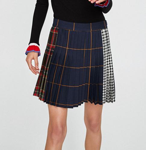 サイドジップ 格子柄のドッキング プリーツ ミニスカートです♪
