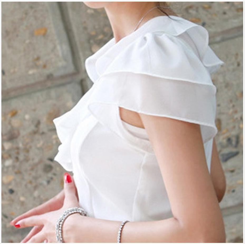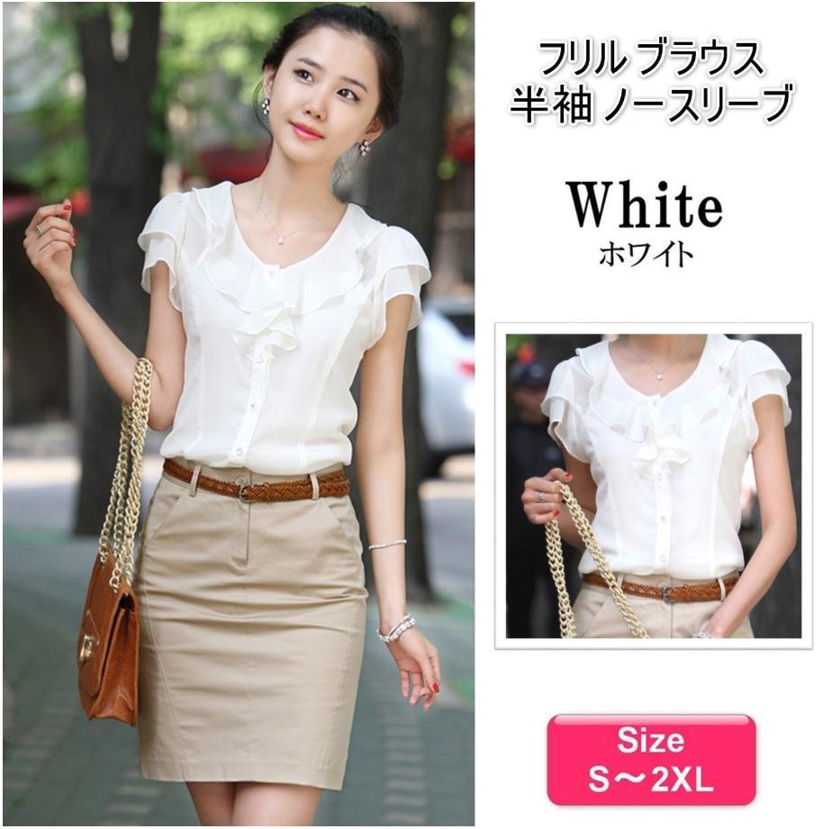 胸元から肩にかけてのかわいらしいフリルが特徴の『白のフォーマルブラウス』でもっと可愛くもっと爽やかに。