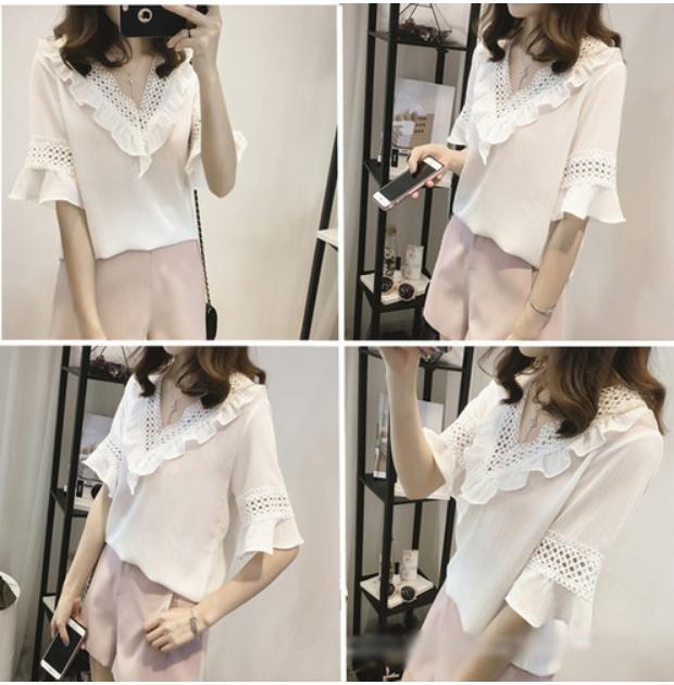 胸と袖のフリル と 透け感 のある カッティングデザイン が キレイ な おとなブラウス☆☆
