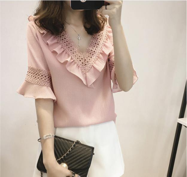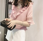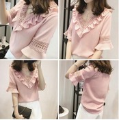 胸と袖のフリル と 透け感 のある カッティングデザイン が キレイ な おとなブラウス☆☆