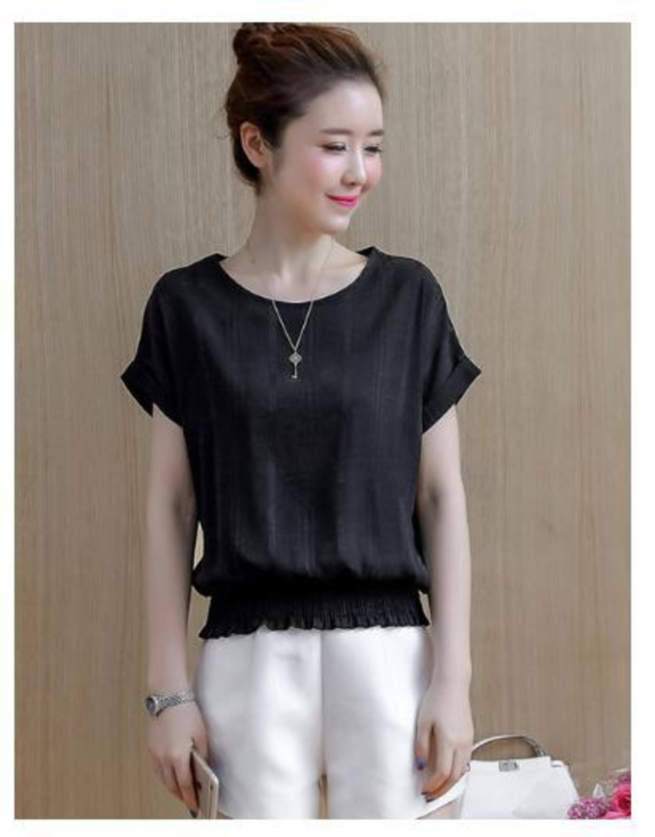 キュッとなっている裾のおかげで胴回りがふわっとなり優しい可愛いシルエットのトップスです。