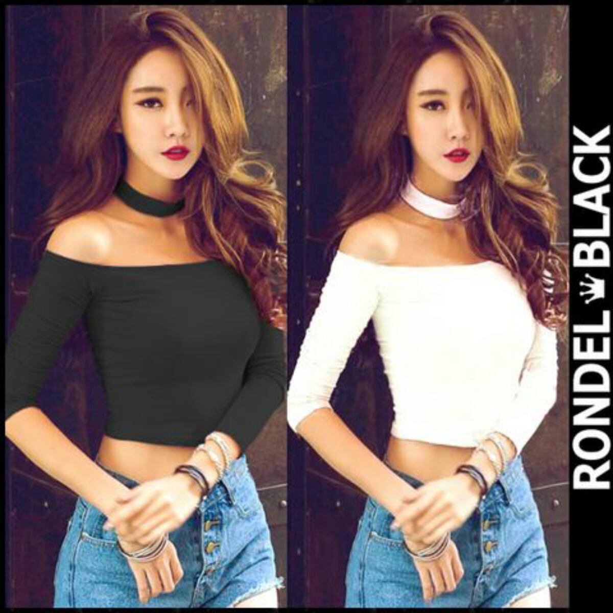 チョーカーネック オフショルダー ショート丈 カットソー トップス 黒 (ブラック) ブラックホルターシャツ