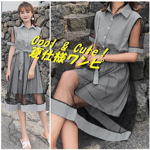 袖と裾の メッシュ がアクセント の 超 夏ワンピ ♪