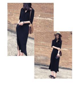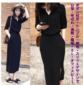 ★日常 OL オフィス 無地 シンプル スリット スリムワンピース