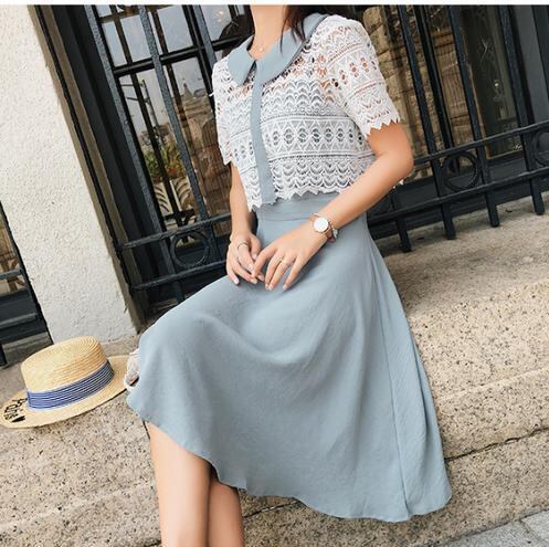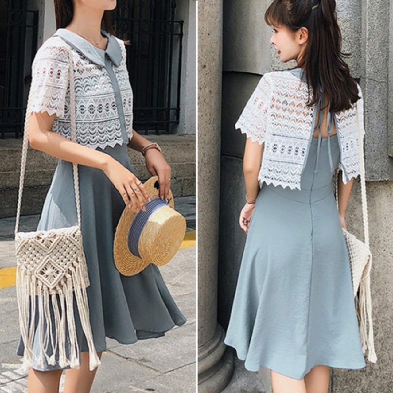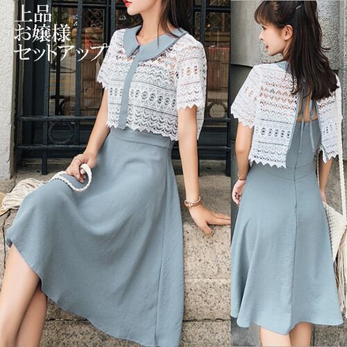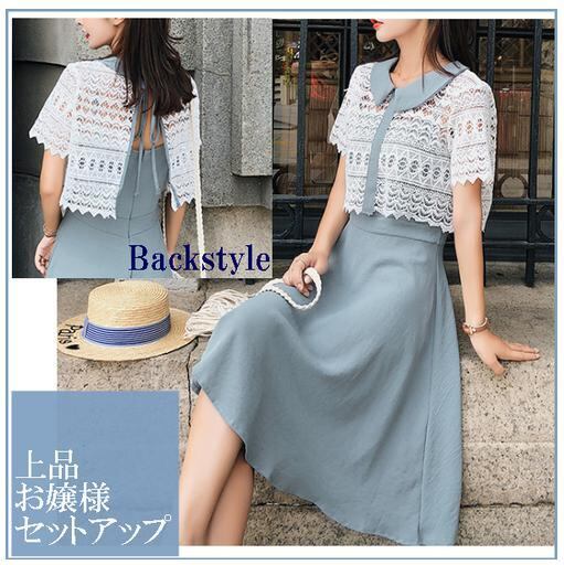 レース が 涼やか な 清涼感 あふれる ツーピース です♪