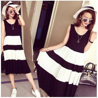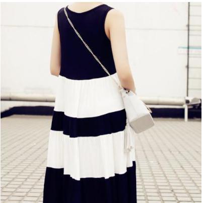 ワンピース ロングドレス ノースリーブ Aライン マキシ マタニティー ラウンドネック 春物