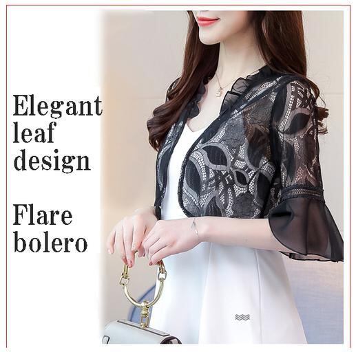 リッチなフレア袖 が ゴージャス で 上品 な印象の 薄手 ショート丈 の ボレロ です。