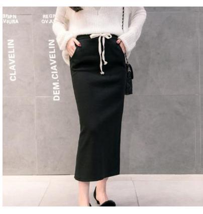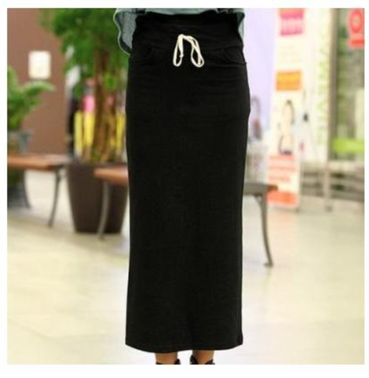 ハイウエスト ニットスカート 後ろスリット入り 紐付き