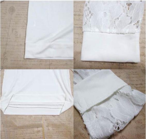 長袖トップス 袖レース 花柄レース プルオーバー 無地