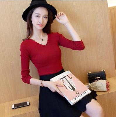 ★今季トレンドのスカラップネックとVネックが合わさった可愛い首元です。可愛らしい華やかな印象を演出してくれます。
