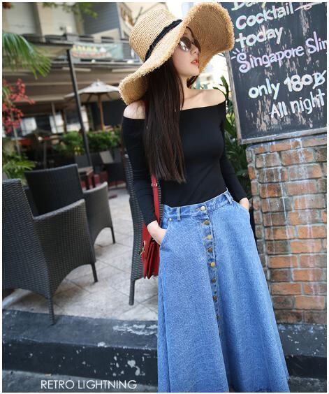 シンプルで上品なシルエットが女性らしさを引き立てるデニムスカート。