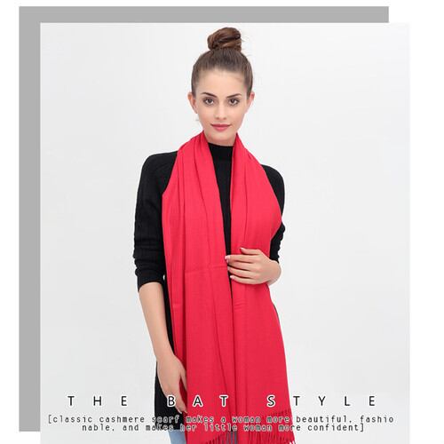レッドカラーの大判だから首元にたっぷり巻いたら 健康 的な 小顔 効果もアップ
