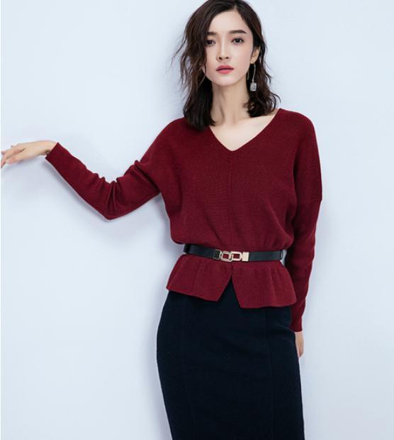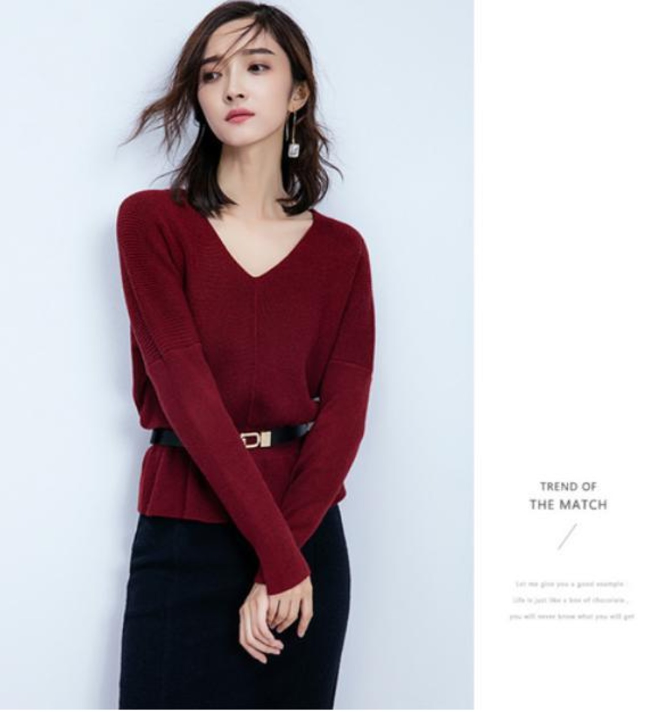 前後の深めのVネックが360度どこから見ても女性らしさを演出する、上品なセクシーさを持つトレンドのニット。