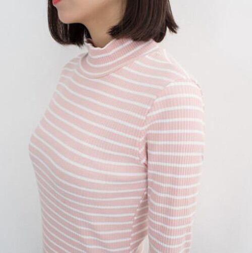 ボーダー 長袖 トップス プルオーバー リブ ニット
