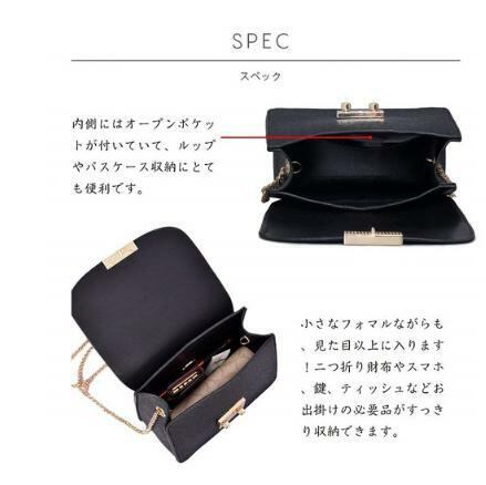 ゴールドのチェーンとバックルが華やかな印象を演出してくれ、カジュアルスタイルから、エレガントなパーティドレスにもぴったり◎