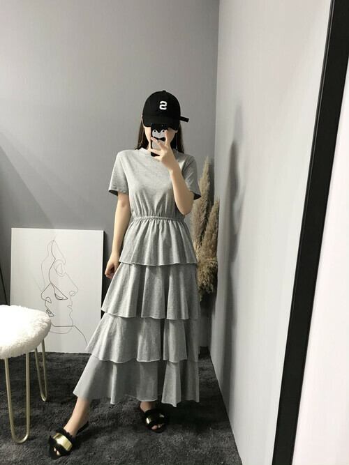 4層の フレア の裾 が 大人可愛い マキシワンピース です♪