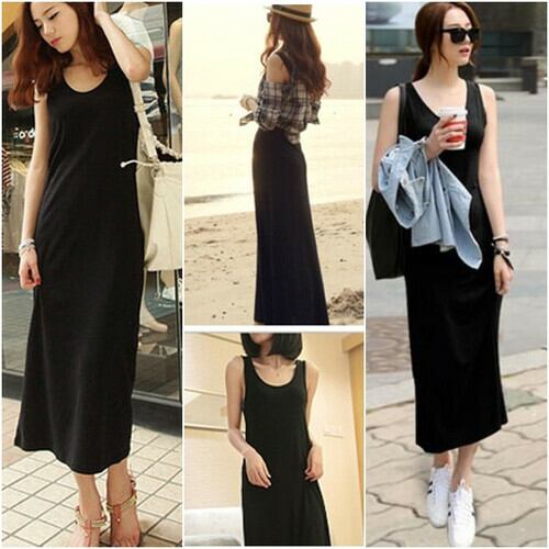 抜群の 着回し 力 の ノースリーブ Tシャツワンピ、縦シルエットで コーデを引き締めさりげなく体型カバーも ! ロング丈ワンピ は1枚は持っておきたい おしゃれさんの 必須アイテム です。