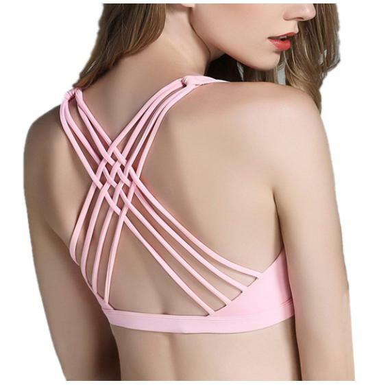 バッククロスが印象的なデザインで女性らしいシルエットと、裏側はメッシュになっており通気性や動きやすさも兼ね備えたスポーツウェアです。