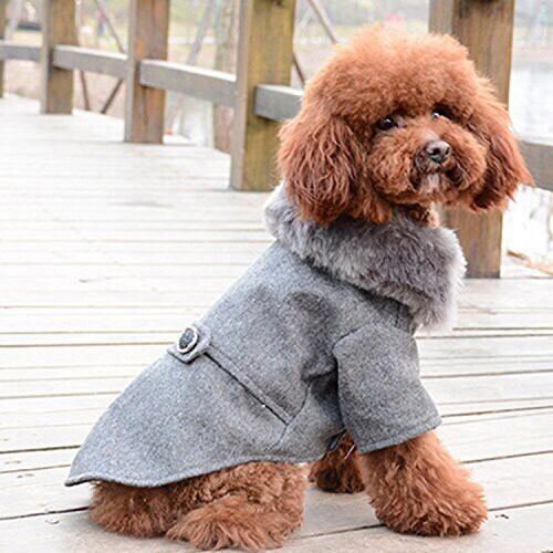 【L・ライトグレー】犬用 ふわふわ ファー付き コート
