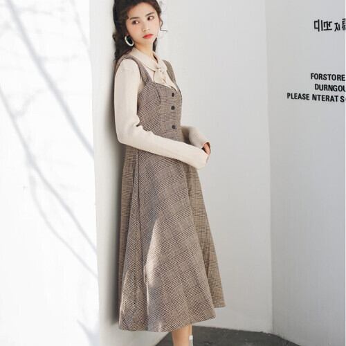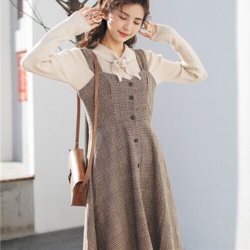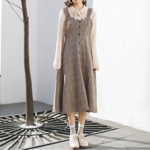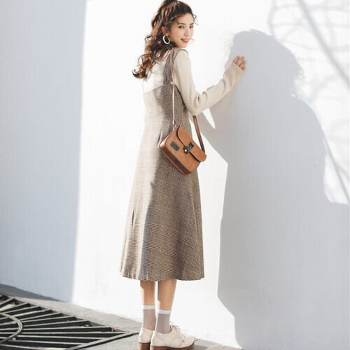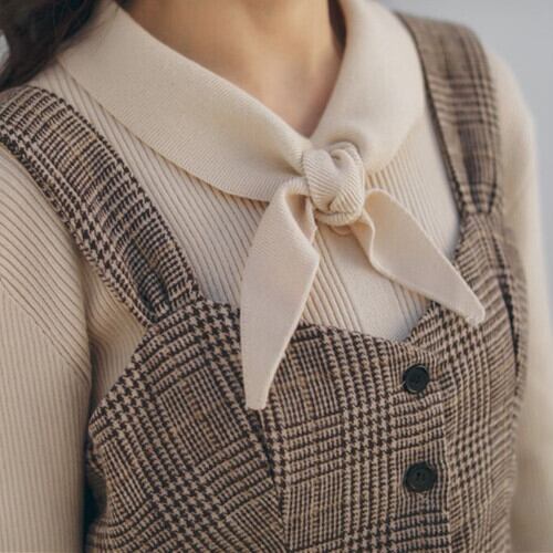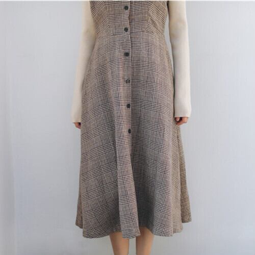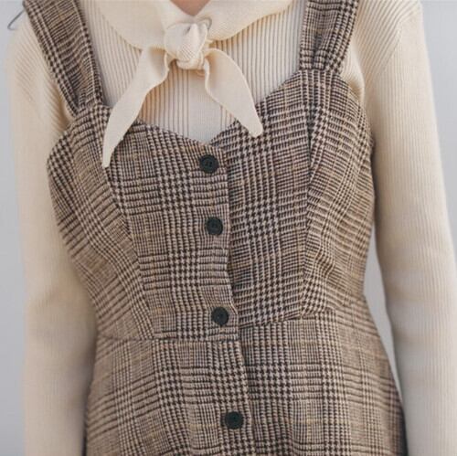 温かみのあるカラーのグレンチェックですので、ジャンパースカートを大人可愛く着こなせます。