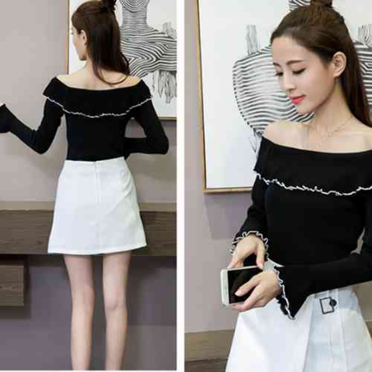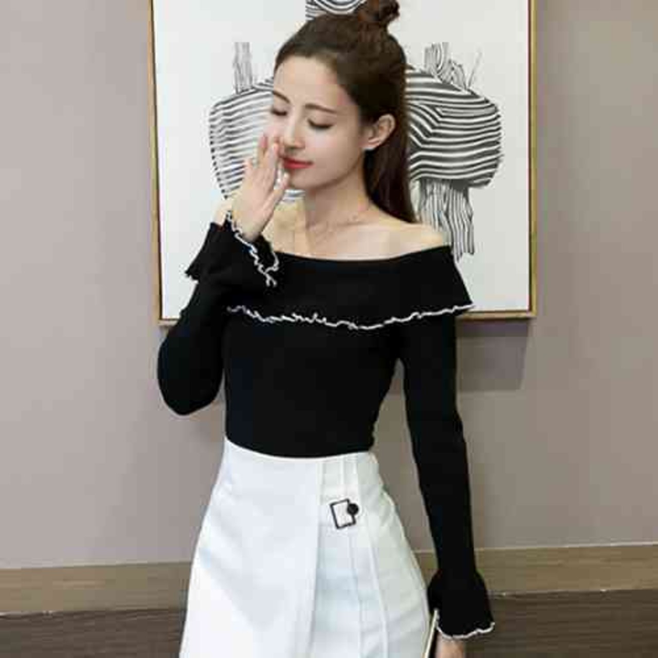 ◎女性の華奢な鎖骨を美しくみせるオフショルネック