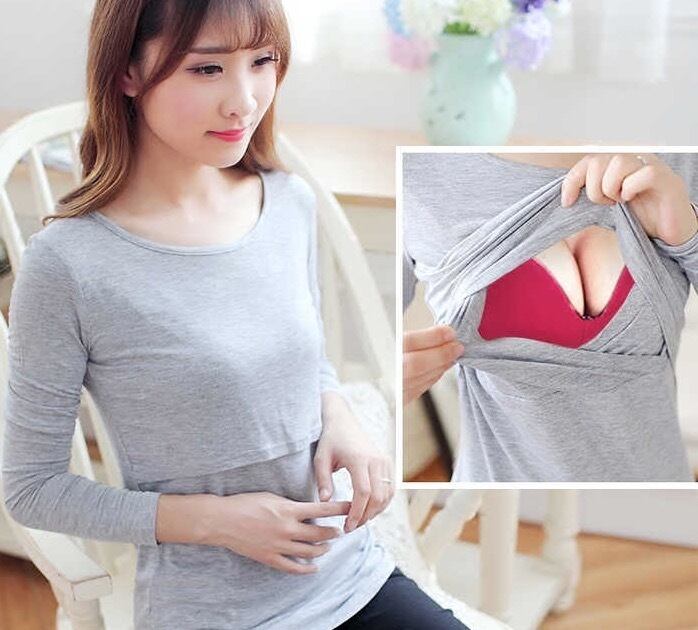 授乳服 マタニティウェア ロンT ロンティー 授乳ロンT 授乳ロンティー トップス インナー カットソー 秋冬 春夏 長袖