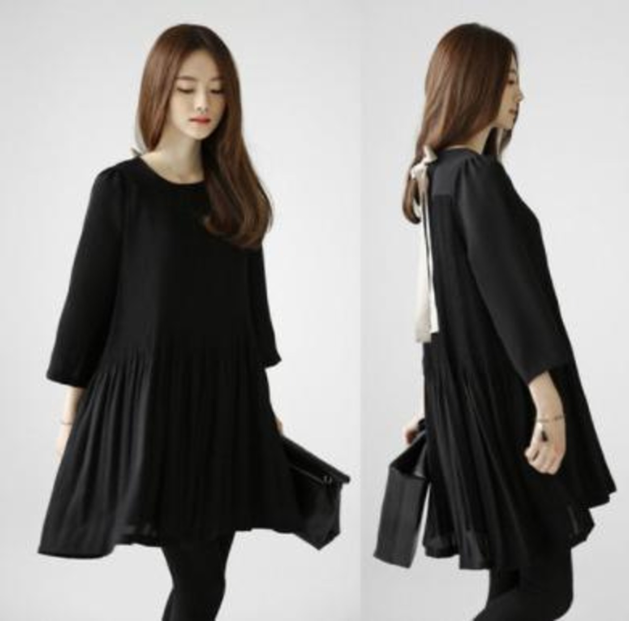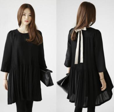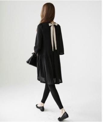 マタニティー 妊婦でも レディース 背中リボン シフォン 無地 ワンピース 【実物写真】