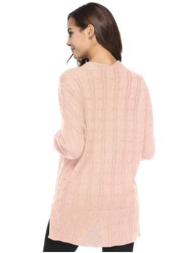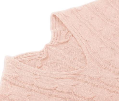 全体のケーブル編みに対して袖からの切り替えがオシャレで大人なニットに仕上がっています。