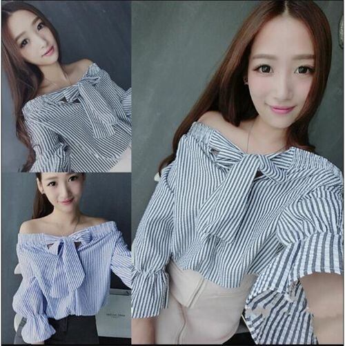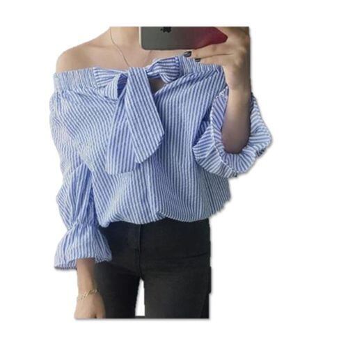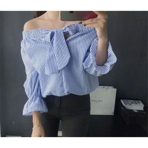 きれいな肩出し!オフショルダー型フリルブラウス。