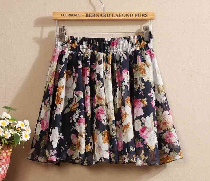 かわいい シフォン ミニスカート 紺ブーケ柄