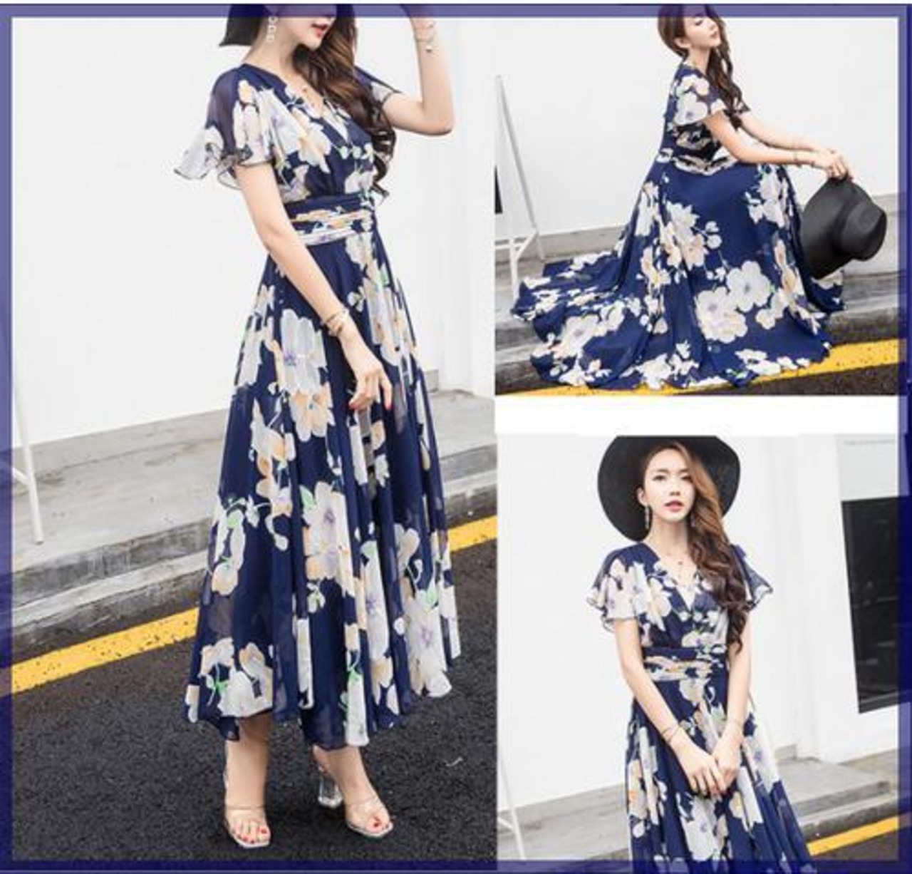 上品 な印象! ネイビー × ホワイト ☆女性らしさを際立たせる フラワー柄、