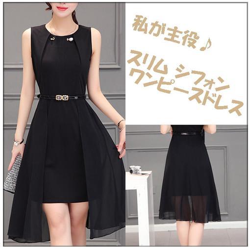 黒のベルト で ウエストマーク、美しいシフォン レイヤード スカート