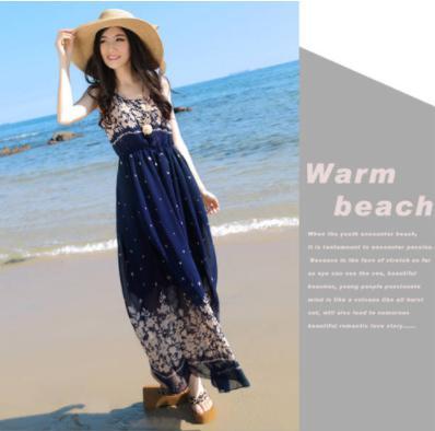 安い☆大人気!! かわいい♪ 花柄 マキシワンピース 紺 フリーサイズ ノースリーブ レディース